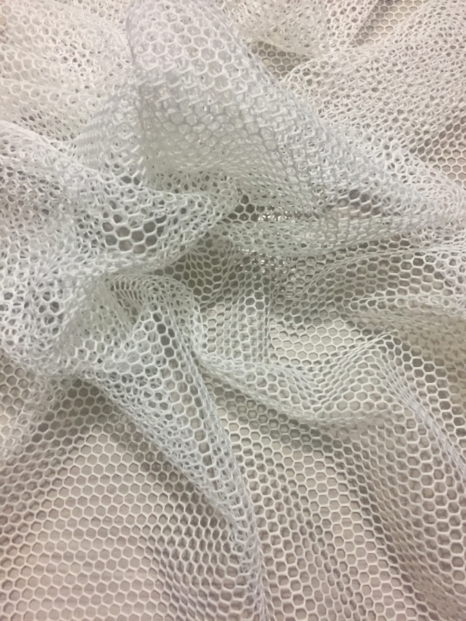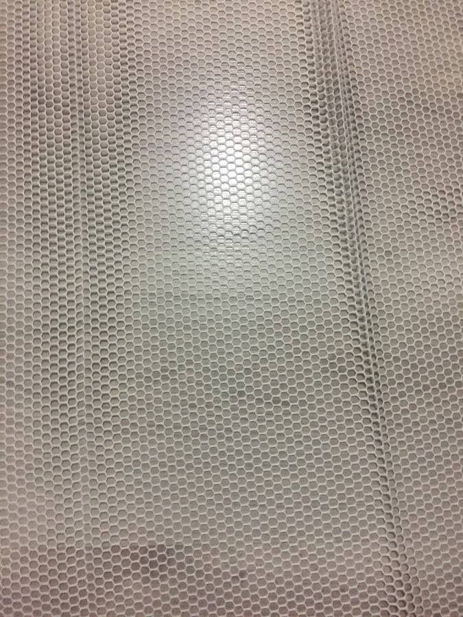 Fond: Perdeaua este din plasa crem-unt, semi-transparent, aproximativ 30% transparenta.