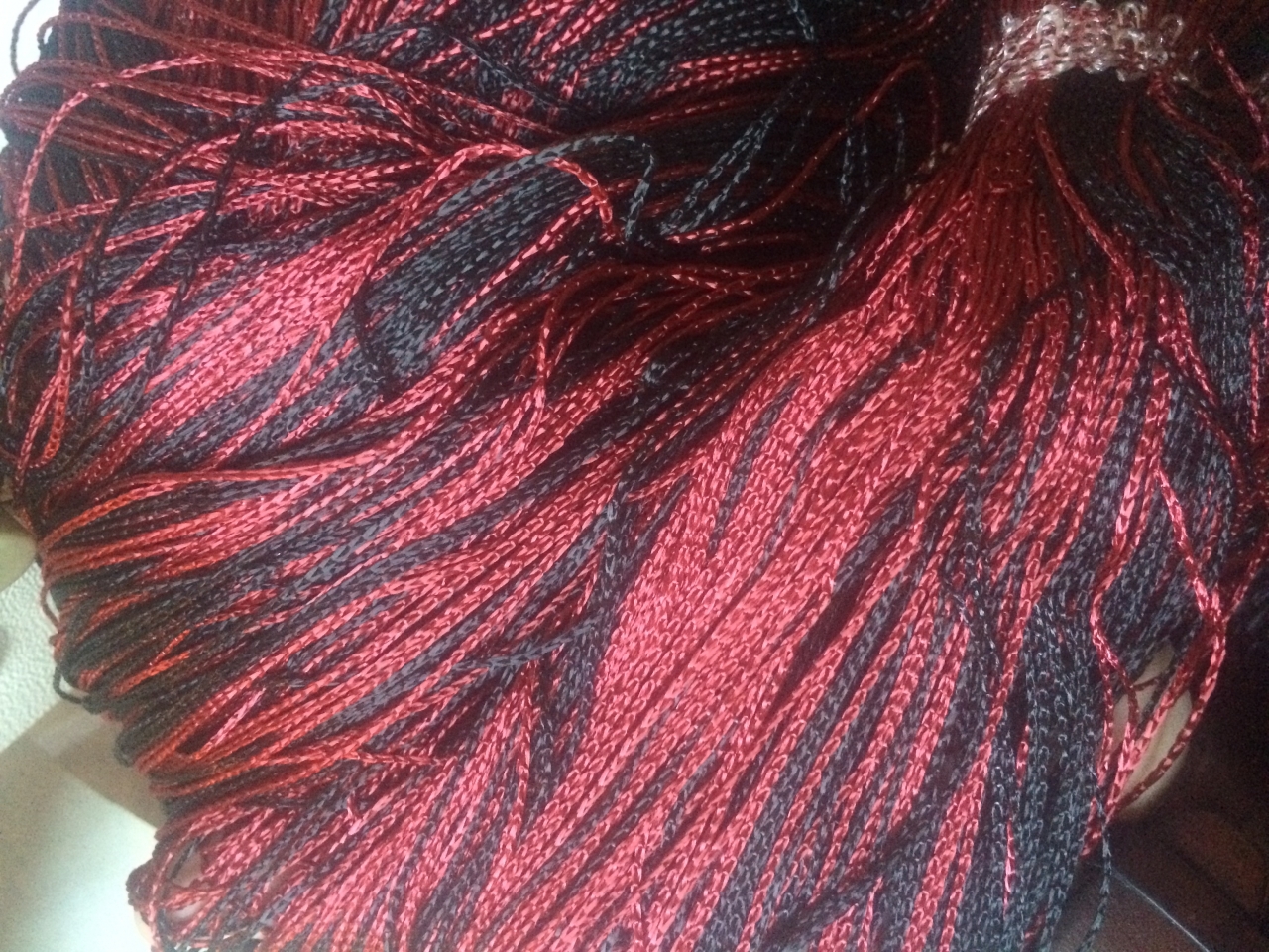 Perdea, franjuri, tip spagheta, degrade in 2 culori, grena si Negru...